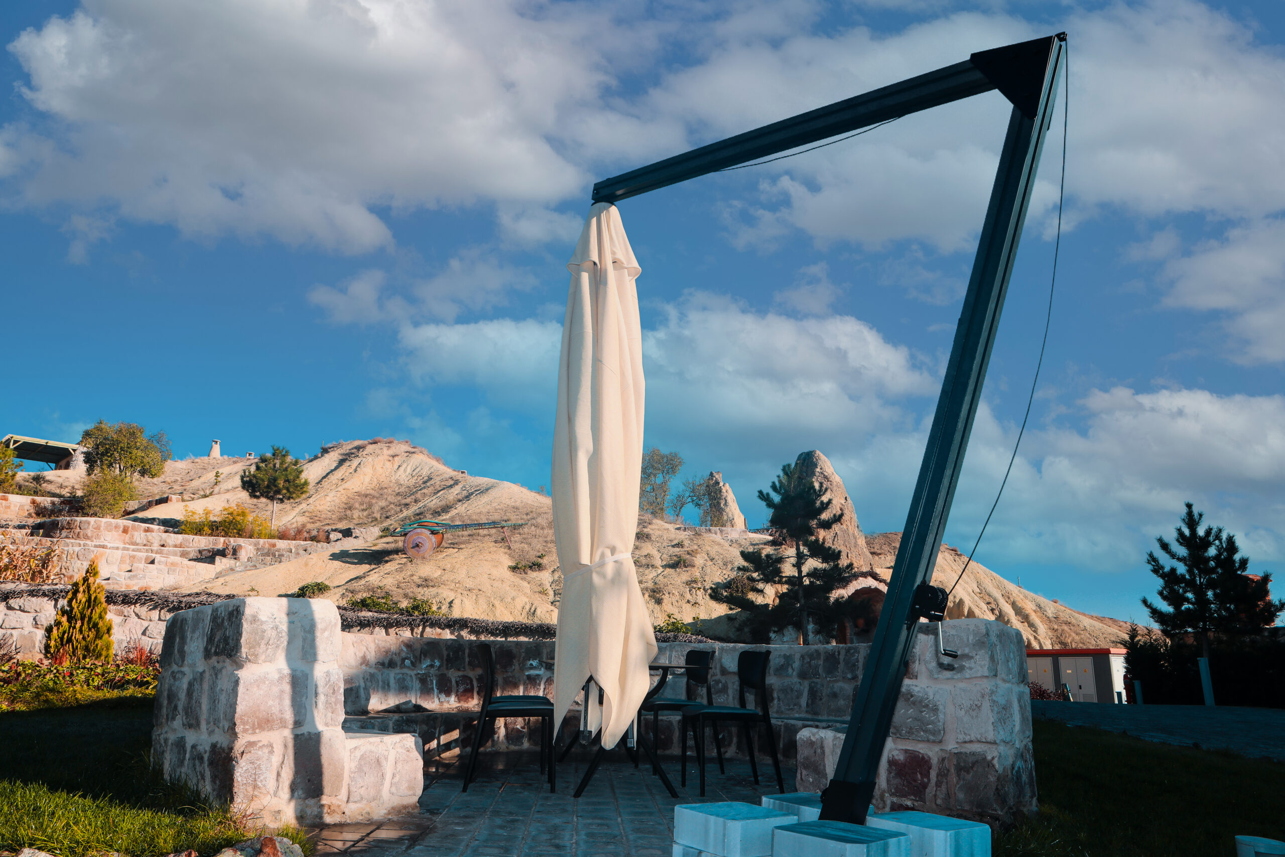 Solidité et Résistance : Fabriqué à partir de matériaux de qualité supérieure, le Parasol BANANA CLASSIC est conçu pour résister aux intempéries et aux rayons UV. Sa structure solide assure une stabilité parfaite même dans les conditions extérieures les plus exigeantes.